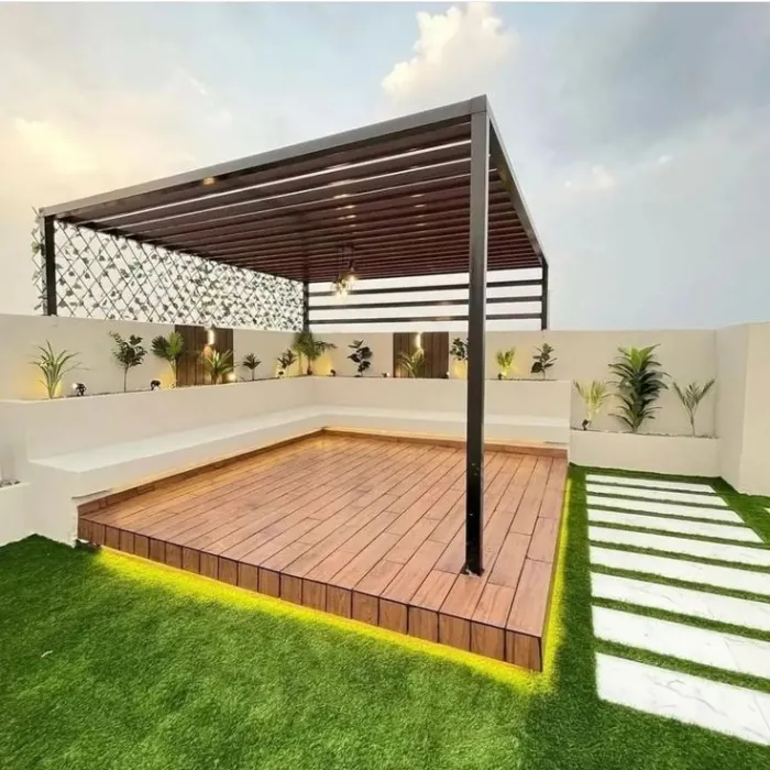 عند البحث عن "تصميم جلسات فخمة جدة"، يكون التركيز على اللمسات الراقية التي ترفع من قيمة المكان. يشمل التصميم اختيار خامات فاخرة، مثل خشب الساج أو البلوط أو الحديد المزخرف، مع تشطيبات احترافية، وألوان متناسقة مع ديكور الفيلا أو الحديقة. يُضاف إضاءة مخفية، عنصر نباتي راقٍ، أرضيات من الحجر أو البلوك الخارجي، لتجعل الجلسة ليست مجرد مكان للجلوس بل تجربة فخمة في الهواء الطلق. هذا النوع من التصميم يتناسب مع الفلل والمشاريع الفاخرة في جدة.